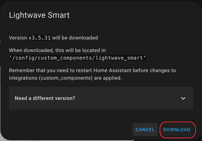 Click Download, then restart Home Assistant when prompted.