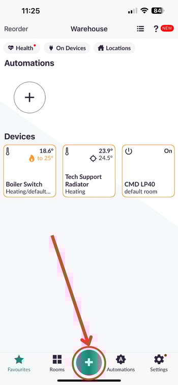 At the bottom centre of the screen, tap the green ‘+’ button to create a new automation.