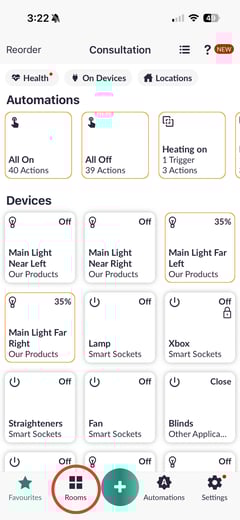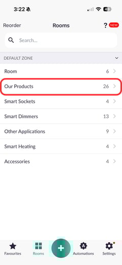 Open the Lightwave app and go to Rooms.